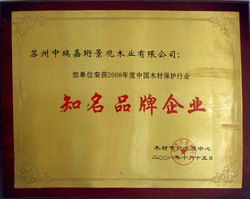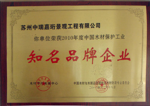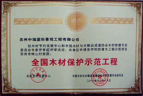 2013年在《中國木材保護工業協會》的組織下,我公司榮獲本年度防腐木企業評選《防腐木材企業十強》稱號。